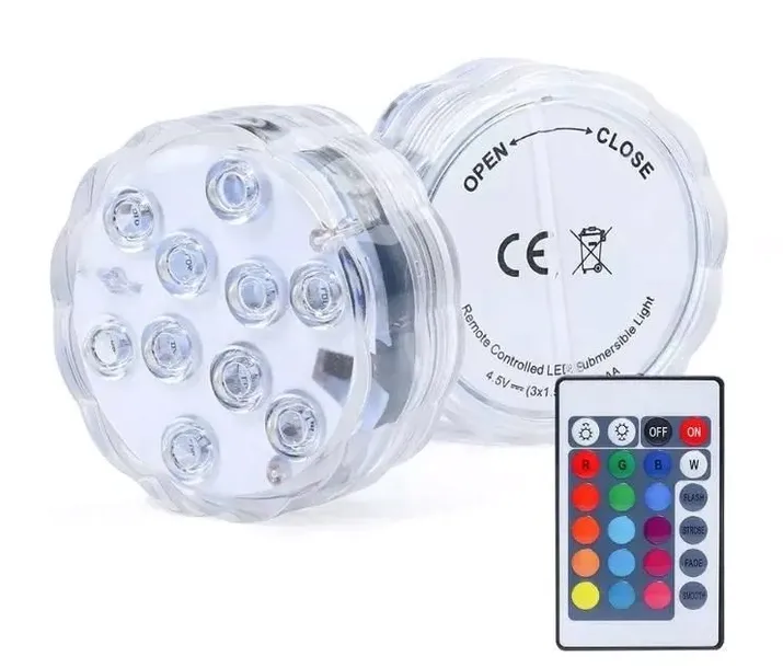 WODOODPORNA LAMPKA 10 LED RGB PILOT PODSTAWKA