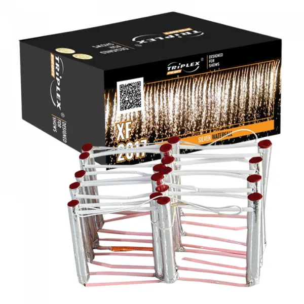 Srebrny wodospad iskier Ilość Ładunku: 18 sztuk na odcinku 1,7m Wysokość efektu: 1,5m Czas trwania efektu: około 45 sekund Sposób odpalania: Lont Kategoria: F2