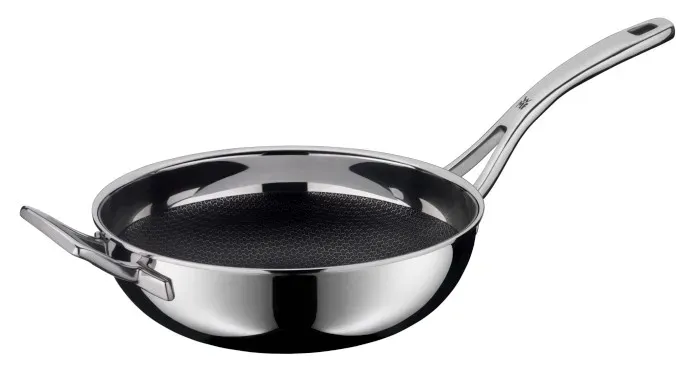 Wok marki WMF sprawdzi się do przygotowania dań kuchni azjatyckiej, ale także warzyw z ryżem czy większej ilości mięsa. Dzięki wysokim brzegom nic nie wysypie się na kuchenkę.