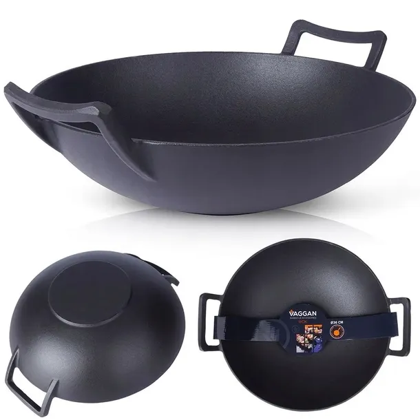 Patelnia wok, pozwoli Ci przygotować pyszne dania z mięsa, warzyw, jak i dania inspirowane kuchnią azjatycką. Idealna do przygotowania makaronów. Posiłki można przygotowywać w piekarniku, na piecu oraz bezpośrednio na ogniu. UWAGA! Po każdym użyciu umyć, wytrzeć suchą szmatką do sucha i natłuścić. Przygotowane potrawy w patelni żeliwnej możemy z łatwością przenosić dzięki poręcznym uchwytom lub bezpośrednio serwować w nim potrawy. Odpowiednio użytkowana posłuży długie lata. Oryginalny produkt holenderskiej marki Vaggan. Wyprodukowano zgodnie z europejskimi standardami.
