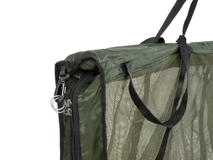 Paski torby są wyposażone w pływaki na całej długości, co pozwala na bezpieczne przechowywanie połowu w wodzie, np. podczas przygotowań do fotografowania. Główna część wykonana jest z drobnej siatki, która jest niezwykle delikatna dla ryb. Zastosowany materiał pozwala na odprowadzenie całej wody podczas podnoszenia i przenoszenia ryb, umożliwiając precyzyjne ważenie.