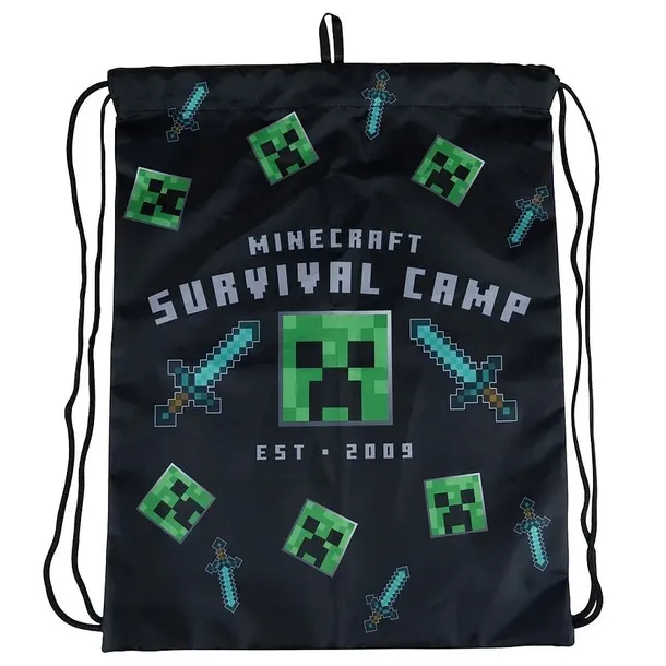 Oryginalny worek zaciekawi każdego ucznia swym młodzieżowym motywem z popularnej gry Minecraft. Worek z serii Survival Camp z elementami znanymi z gry. Komora główna ściągana sznurkami, można go nosić na plecach, na ramieniu lub w ręce. Wykonany z dobrego jakościowo materiału, odpornego na wilgoć, lekki i wygodny.