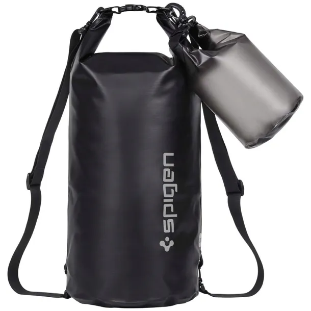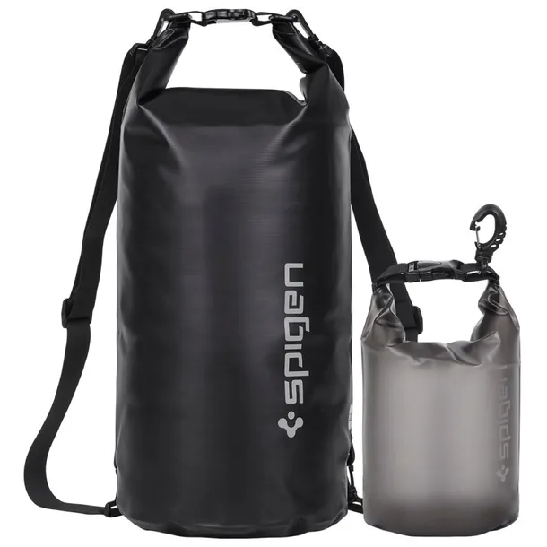 Funkcjonalny zestaw dwóch wodoodpornych toreb (20L i 2L) A630 od marki Spigen. Dzięki swojej lekkiej i wodoszczelnej konstrukcji idealnie sprawdzą się w trakcie uprawiania sportów wodnych, na wycieczce w góry czy na kempingu. Podwójny system zamykania sprawia, że pozostawione wewnątrz przedmioty pozostaną zabezpieczone przed skutkami zalania.