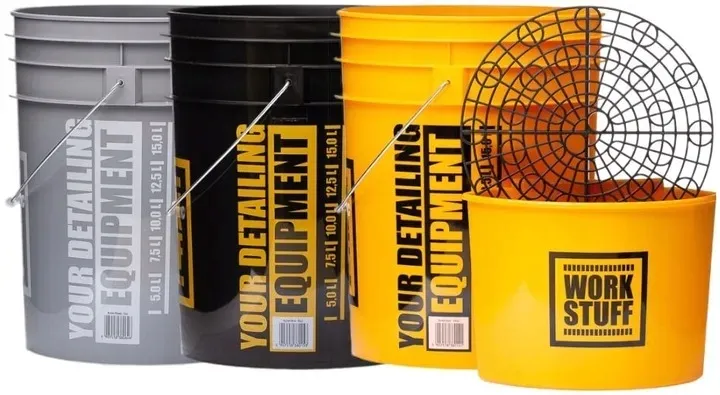 Ten wysokiej jakości zestaw wiader do mycia samochodu Work Stuff wyróżnia się nie tylko atrakcyjnym i ergonomicznym wyglądem, ale także wyjątkowymi funkcjami. Składa się z trzech wiader o pojemności 20L każde, przeznaczonych do różnych etapów mycia: WASH, RINSE i WHEELS, co zapewnia kompleksową i skuteczną pielęgnację Twojego samochodu.
