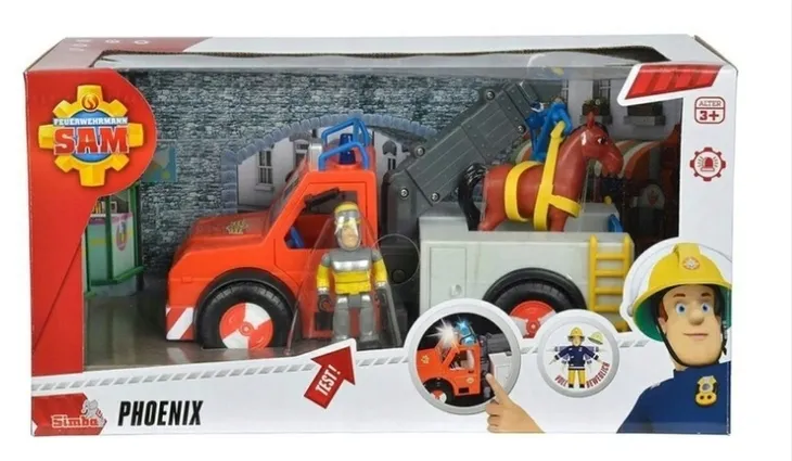 With the Fireman Sam Phoenix, Fireman Sam dashes off with the blue lights flashing to rescue a horse in danger