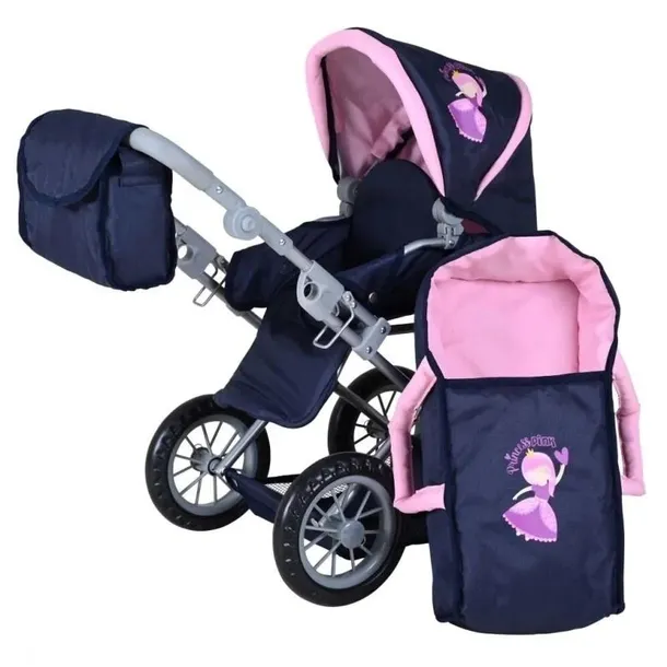 Wózek dla lalek Ruby princess blue Knorr Toys 63142 Przyciągający wzrok wizerunkiem bajkowej księżniczki, wygodny w użytkowaniu granatowo-różowy wózek dla lalki z regulowanym daszkiem Ruby Knorr Toys to absolutny must-have dla każdej dziewczynki, która uwielbia wcielać się w rolę troskliwej mamy. Został zaprojektowany z myślą o dzieciach w wieku od lat 3. Zachęca do zabawy w domu i na podwórku. Można go używać jako gondoli lub spacerówki, a także korzystać z samego nosidełka. Wyróżnia się modną kolorystyką i starannym wykonaniem. Poznaj szczegóły wózka 63142 renomowanej marki Knorr Toys! w gondoli mieszczą się lale o wysokości do 46 cm, daszek jest regulowany, w zestawie torba (41 19 cm), do przymocowania na rączce wózka lub do założenia na ramię, pod wózkiem znajduje się siatka na zakupy i akcesoria, suwak umożliwia regulację wysokości rączki (ok. 34 62 cm), dzięki czemu zabawka rośnie wraz z dzieckiem. Wymiary wózka dla lalki: 51 37 64 cm. Wybierz wózek dla lalek 63142 o solidnej konstrukcji i modnym designie! Jeśli szukasz stabilnego i lekkiego wózka dla lalek, polecamy model 63142 cenionej, niemieckiej marki Knorr Toys. Ułatwia dziecku użytkowanie i zapewnia wiele atrakcyjnych możliwości zabawy. Zachęca do spędzania czasu na świeżym powietrzu. Z pewnością posłuży na dłużej dziękizastosowaniu dużych, piankowych kół oraz wysokiej jakości materiałów. Szybki i prosty sposób składania umożliwia zabranie pojazdu do samochodu lub na wakacje. OSTRZEŻENIE! Nie nadaje się dla dzieci w wieku poniżej 36 miesięcy! Małe części- ryzyko zadławienia! Wyłącznie do użytku domowego! Trzymać z dala od ognia! Ta zabawka nie nadje się do faktycznie siadania dzieci, niemowląt i zwierząt. Do stosowania pod nadzorem osoby dorosłej. Niech Twoje dziecko nigdy nie bawić się z zabawkami w pobliżu schodów lub stokach. Konstrukcja (składanie) musi być przeprowadzona przez osoby dorosłej. Narzędzia i drobne części poza zasięgiem dziecka. Przed użyciem, wszystkie torby i opakowania muszą być usunięte. Wszelkie roszczenia z gwarancji i rękojmi są unieważnione jeśli zostanie zlekceważony. Zalecamy przechowywanietych danych w celu dalszej korespondencji.