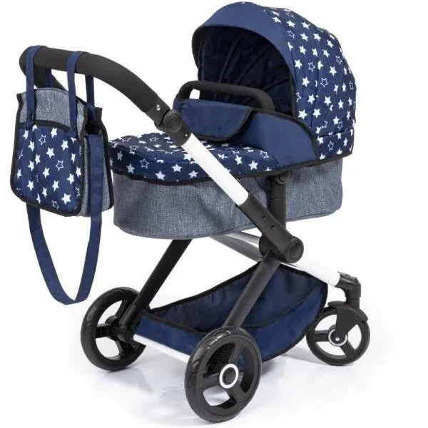 Nowoczesny wózek dla lalek kombi XEO ma elegancki wygląd i wiele różnych funkcji, odpowiedni dla lalek o wielkości do 52 cm. Dzięki regulowanej rączce wózek ten można łatwo dostosować do wzrostu dziecka. Możliwe jest również umieszczenie walizki w obu kierunkach. Ponadto Neo Vario ma odwracalny uchwyt, dzięki czemu można go łatwo przesuwać w obie strony. Dzięki dołączonym zatrzaskom i możliwej zmianie kąta przenośnego łóżeczka, wózek dla lalek można w kilka sekund zamienić na wózek spacerowy. Pokrowiec ma podwójne przeznaczenie - jeśli lalka siedzi lub leży w wózku, chroni ja zarówno przed słońcem, jak i wiatrem. Obracane przednie kola gwarantują stabilne pokonywanie zakrętów. Wymiary: 65 x 37 x 74 cm.