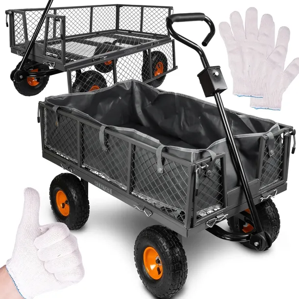 Przyczepka została solidnie wykonana, co zapewnia jej długą żywotność i wytrzymałość na ciężkie warunki. Konstrukcja została pomalowana metodą proszkową. To idealne narzędzie dla osób, które potrzebują transportu różnych przedmiotów w ogrodzie lub na działce, bez konieczności narażania się na kontuzje czy przemęczenie.