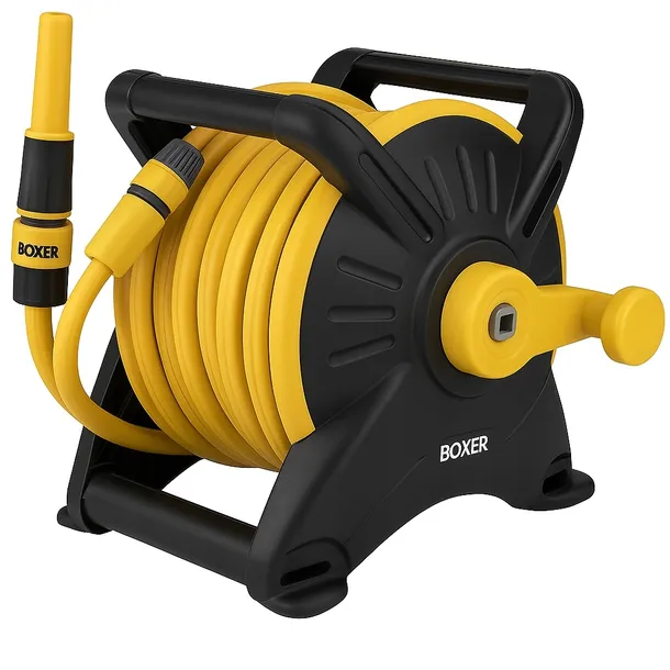 Zestaw marki BOXER to praktyczne i kompletne rozwiązanie do podlewania ogrodu. W skład zestawu wchodzi wysokiej jakości wąż ogrodowy na stabilnym wózku z kołowrotkiem, który znacznie ułatwia przechowywanie i użytkowanie węża. Produkt został wykonany z trwałych materiałów, dzięki czemu jest odporny na uszkodzenia i zapewnia długą żywotność.