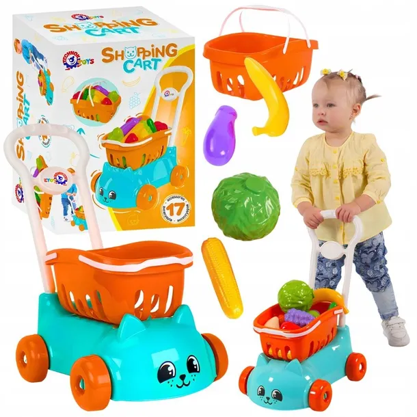 W zestawie: wózek z rączką, koszyk. Wygodny kosz z uchwytami jest bezpiecznie przymocowany do wózka.