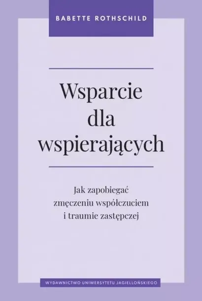 Pomagając innym, nie zapomnij o sobie Przeprowadzanie pacjentów przez kryzys i możliwość obserwowania zachodzących w tym procesie zmian daje terapeutom poczucie satysfakcji. Często jednak nie uświadamiają sobie ukrytych kosztów takiej pracy i nie zauważają narastającego wypalenia zawodowego. Babette Rothschild zwraca uwagę na kluczowe znaczenie dobrostanu osób niosących pomoc innym. Prezentując badania z zakresu psychologii neurobiologicznej, eksperymentalnej oraz społecznej, wyjaśnia, dlaczego terapeuta doświadcza negatywnych skutków nadmiernej empatii i jak może je pokonywać. Na podstawie koncepcji osobistego regulatora empatii i uważności autorka opracowała narzędzia, które pozwolą zmniejszyć ryzyko wystąpienia objawów zmęczenia współczuciem czy traumy zastępczej. Praktyczne wskazówki zawarte w tej książce umożliwią zastosowanie strategii regulowania autonomicznego układu nerwowego, radzenia sobie ze stresem i wyzwaniami współczesnego świata, takimi jak kryzys klimatyczny, niepokoje społeczne czy konflikty zbrojne. Wsparcie dla wspierających to podręcznik, dzięki któremu nauczysz się wyznaczać granice w kontaktach z pacjentami, dbać o swój dobrostan psychiczny i fizyczny oraz wzmacniać relacje międzyludzkie. Jest pozycją obowiązkową nie tylko dla terapeutów, lecz także dla lekarzy, ratowników medycznych i wszystkich osób zajmujących się opieką nad innymi. Jeśli pomagając innym, nie chcecie ulec wypaleniu, powinniście poznać neurologiczne, psychologiczne i somatyczne mechanizmy własnego współ-przeżywania. Ta książka podpowie wam, jak umiejętnie gospodarować empatią. Bogdan de Barbaro Książki Babette Rothschild czytam zawsze z wypiekami na twarzy. Każda z nich jest prawdziwą intelektualną ucztą dla psychoterapeutów, terapeutów traumy oraz wszystkich zainteresowanych neurofizjologią traumy i naszego zdrowienia. Tak było i tym razem. Wsparcie dla wspierających to świetna pozycja dla wszystkich, którzy startują w zawodzie psychoterapeuty, i dla każdego, kto stoi na progu zawodowego wypalenia. Przeczytajmy ją dla dobra swojego i osób, z którymi pracujemy. Sabina Sadecka, nauczycielka terapii traumy, prowadząca webinary o psychoterapii i podcast Ładnie o traumie Babette Rothschild od kilkudziesięciu lat pracuje jako klinicystka. Jest autorką i redaktorką cenionych publikacji na temat terapii traumy i PTSD, w tym bestsellerowych pozycji Ciało pamięta. Psychofizjologia traumy i terapia osób po urazie psychicznym (WUJ, 2014) oraz Ciało pamięta, tom 2: Rewolucja w terapii traumy (WUJ, 2021). Obecnie pisze, prowadzi superwizję i naucza, realizując jednocześnie wymagający harmonogram międzynarodowych wykładów, szkoleń i konsultacji.
