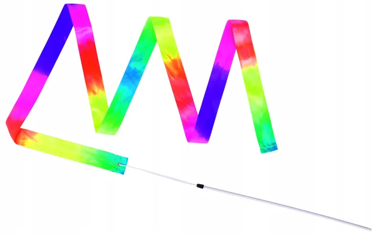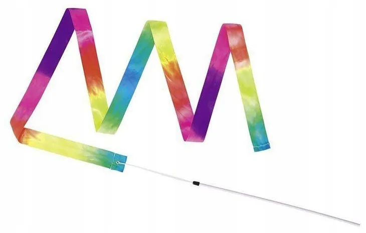 Tęczowa wstążka gimnastyczna jest idealnym dopełnieniem zadań akrobatycznych. Wstążka zamocowana została na drewnianym patyku ułatwiającym jej trzymanie.Długość wstążki: 200 cm