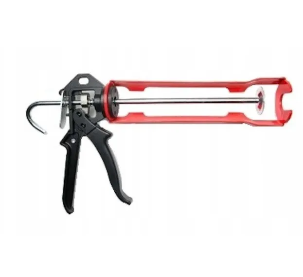 Trwała i solidna oraz wzmocniona konstrukcja korpusu. Doskonale spasowany mechanizm spustu. Ergonomiczna aluminiowa rękojeść. Stalowy tłok i łożysko. Obracane łożysko. Okrągły przekrój tłoka. Szpilka do udrażniania. Długość całkowita 350 mm (przy wsuniętym tłoku). Do stosowania z zasobnikami 300 ml.