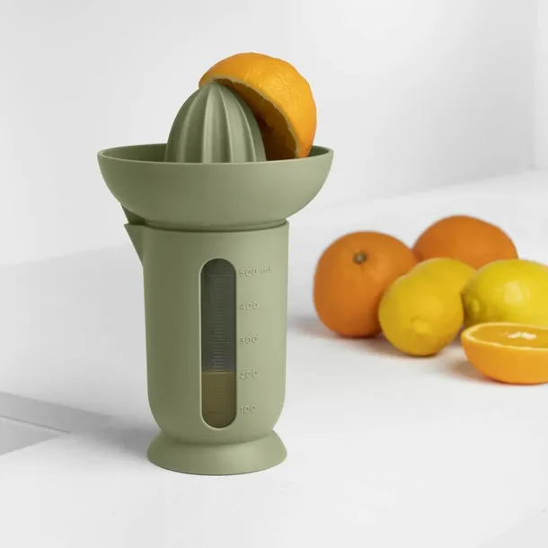 - polipropylen, wewnątrz poliwęglan, miarka, wyciskacz do cytrusów o różnej wielkości, zaokrąglone dno