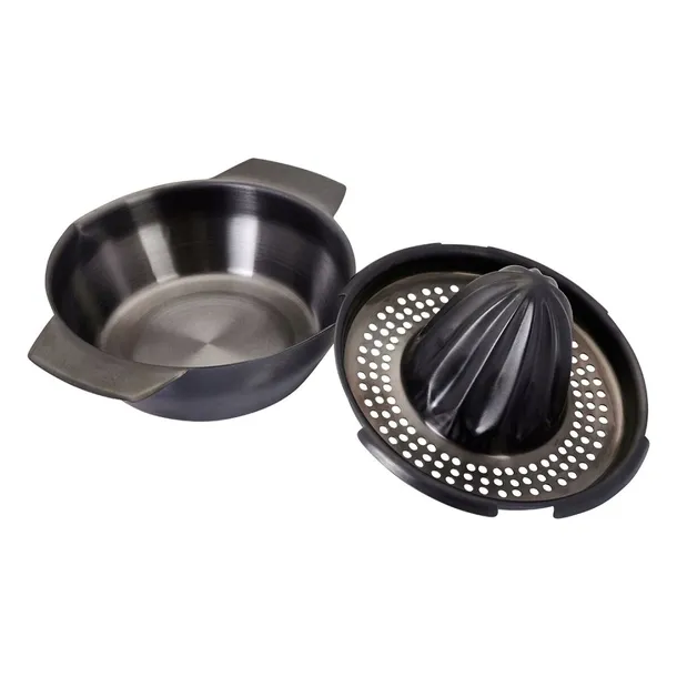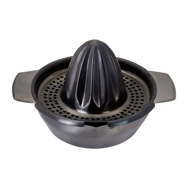 - dzięki perforowanej nakładce pestki i miąższ nie wpadają do miseczki z sokiem