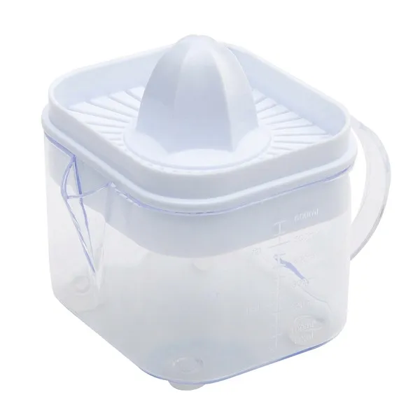 Pojemnik z wyciskarką do pomarańczy oraz wyciskarką do cytryn o całkowitej pojemności 600 ml.
