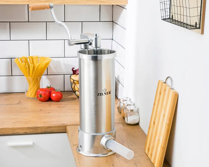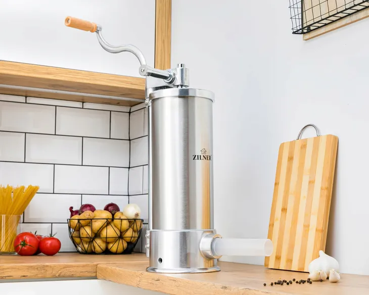 Nadziewarka do mięsa ZILNER ZL-3905 jest poręcznym i przydatnym urządzeniem w gospodarstwie domowym. Pozwala sprawnie i bezpiecznie przyrządzić domowe wyroby mięsne np. kiełbasy, pasztety, kabanosy i kaszanki. Odznacza się solidną konstrukcją, która umożliwia łatwą obsługę – komfortowe napełnianie jelit dowolnym farszem (mieszanina mięsa, tłuszczu, wody i przypraw). Ponadto nadziewarka ZILNER ZL-3905 jest wytrzymała, odporna na ścieranie i prosta do utrzymania w czystości.