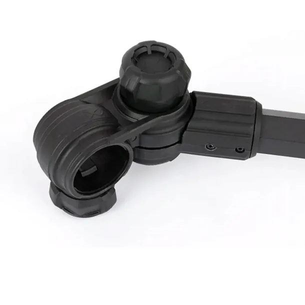 - Regulacja i Dopasowanie: Ramię wyposażone jest w rozszerzany, wewnętrzny element z blokadą, który umożliwia szybką i łatwą regulację długości. Dodatkowo, wytrzymała blokada pod wieloma kątami pozwala na precyzyjne dostosowanie ustawienia wędki do preferencji łowiącego.
