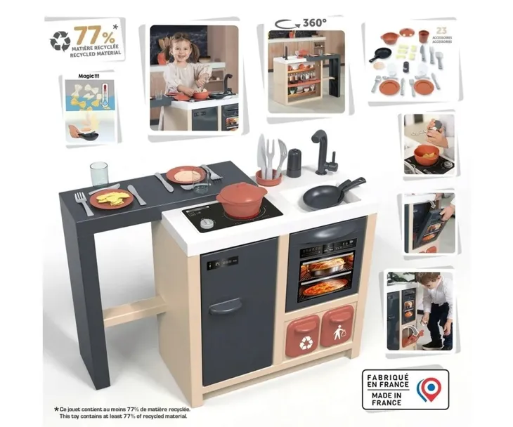Nowoczesna kuchnia inspirowana aktualnymi trendami. Dzięki 360° powierzchni do zabawy ta wyspa stanie się centralnym punktem zabawy, pozwalając małym kucharzom gotować i bawić się wspólnie z przyjaciółmi.