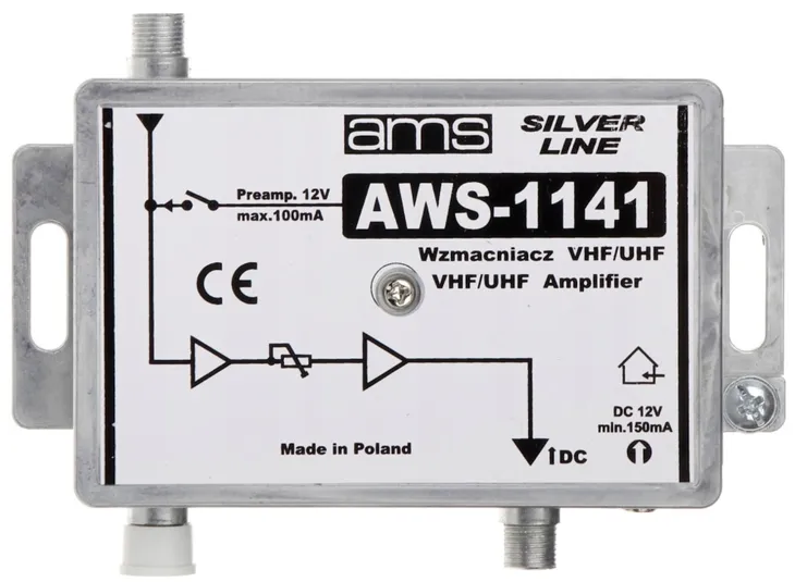 Wzmacniacz AWS-1141 jest przeznaczony do pracy w instalacjach antenowych RTV indywidualnych i zbiorowych. W przypadku instalacji indywidualnych, anteny należy połączyć zwrotnicą. Wzmacniacz posiada możliwość zasilania przedwzmacniaczy 12V. W tym celu należy przestawić zworę, wg załączonej w komplecie instrukcji.