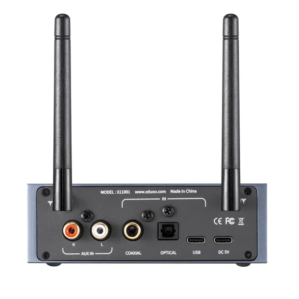 Firma xDuoo wyposażyła MX-01 w trzy wejścia cyfrowe USB, optyczne i koaksjalne oraz liniowe wejście AUX (RCA). Dzięki temu do transmitera można łatwo podłączyć szereg różnych urządzeń. Model w przypadku wejścia optycznego i koaksjalnego wspiera dźwięk do 24-bit/192 kHz.
