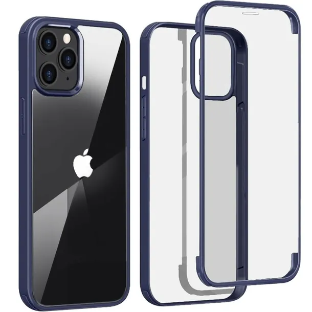 Dwustronne etui ze szkłem hartowanym i ramką TPU do iPhone 12 Pro Max, niebieskie