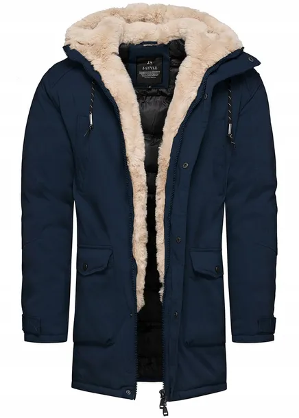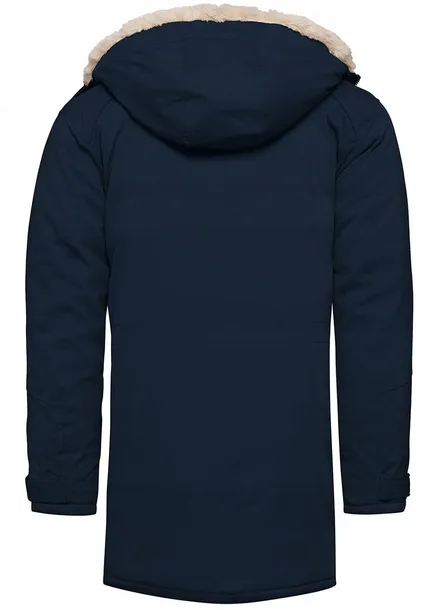 Granatowa kurtka męska - świetna parka na jesień i zimę. Od wewnątrz na atłasowej podszewce, podszyta wzdłuż suwaka futerkiem. Całość w modnym wydaniu. Ta kurtka zasuwana jest na zamek błyskawiczny oraz zapinana na napy. Kaptur jest na stałe, jest ocieplany futrem i regulowany. Kurtka posiada 4 zapinane kieszenie zewnętrzne . Wewnątrz również są kieszonki - jedna wsuwana , jedna zapinana. Rękawy regulowane - na rzep. Skład materiału: 100% poliester.