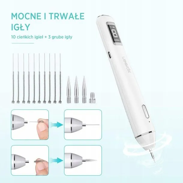 ✔️**Precyzyjna technologia usuwania** 8 poziomów natężenia z podświetlaną diodą LED w głowicy, umożliwiających dokładne i skuteczne eliminowanie brodawek czy włókniaków bez zbędnych niedogodności.
