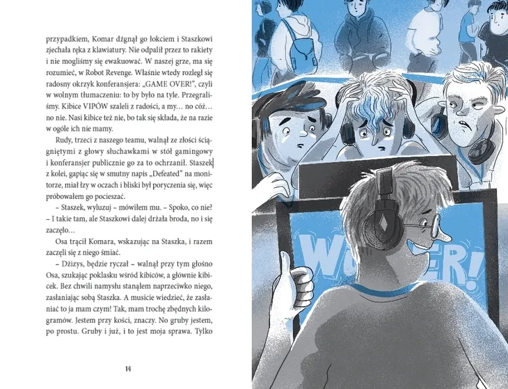 Zabawna historia o dorastaniu, wielkiej pasji i sile przyjaźni. A przy tym inspirująca opowieść o tym, co w życiu najważniejsze! Waldek ma swoje PIRYTETY: turniej gamingowy, kasa i psychofanki. Ma też szczęście, bo jego mama doskonale to rozumie. Wprawdzie jest trochę nadopiekuńcza, ale mniejsza o to. Jego świat staje jednak na głowie, gdy mama musi nagle pójść do szpitala, a chłopcem ma się zająć szalona ciotka Mariolka. Wprowadza w jego życie nieznaną mu dotąd dyscyplinę, zmienia dietę na zdrową i zmusza do uprawiania sportów, których Waldek nie znosi. Jakby tego było mało, team Waldka się sypie, a wyjazd na wymarzony turniej wisi na włosku… Nie ma rady, Waldek będzie musiał stawić czoła wyzwaniom. Tylko czy potrafi? „W dobrych opowieściach możemy przejrzeć się jak w lustrze. A potem spojrzeć na swoje życie na nowo. Podobnie jak Waldek, każdy z nas potrzebuje czasami kogoś życzliwego, kto w odpowiednim momencie doda nam wiary w siebie i odwagi. Czytajcie, ta książka doda Wam mocy!” – Karolina Gruszka, aktorka Agnieszka Dąbrowska nie tworzy nierealnych światów zamieszkanych przez wymyślone postacie. Zaprasza za to młodych czytelników i czytelniczki na spotkanie z ich rówieśnikami, którzy mogliby być ich kumplami z klasy czy podwórka. Radości i smutki, rodzące się i wystawiane na próbę uczucia, a do tego chwile grozy i zadziwiające wydarzenia, z turniejem gamingowym w tle… Ta książka to idealna propozycja dla wielbicieli przygód, nieoczekiwanych zwrotów akcji i wyrazistych bohaterów. A charakteru postaciom Waldka i jego przyjaciół, ciotki Mariolki, mamy i dziadka swoimi ilustracjami dodała Marta Krzywicka. Książkę polecają: WP.pl, Czas Dzieci.pl, Radio Złote Przeboje. Film „Za duży na bajki” w reżyserii Kristoffera Rusa, zrealizowany na podstawie scenariusza Agnieszki Dąbrowskiej, z doskonałymi rolami dziecięcych aktorów oraz Doroty Kolak, Karoliny Gruszki i Andrzeja Grabowskiego, w kinach od 18 marca!
