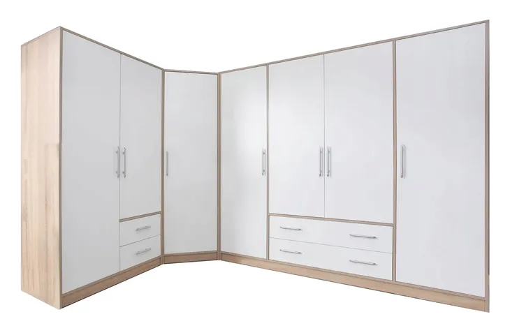 Szafy GRENADA to systemowy sposób na wypełnienie swojej garderoby bądź przedpokoju. Idealnie dobrana kolorystyka bieli oraz dodatku dębu sonoma wprowadzi ład i uporządkowanie do Twojego wnętrza. Duży wybór segmentów oraz możliwości wyboru nadstawek do szaf gwarantuje ogromne powierzchnie magazynowe w Twoim domu i idealne wpasowanie do każdego wnętrza.