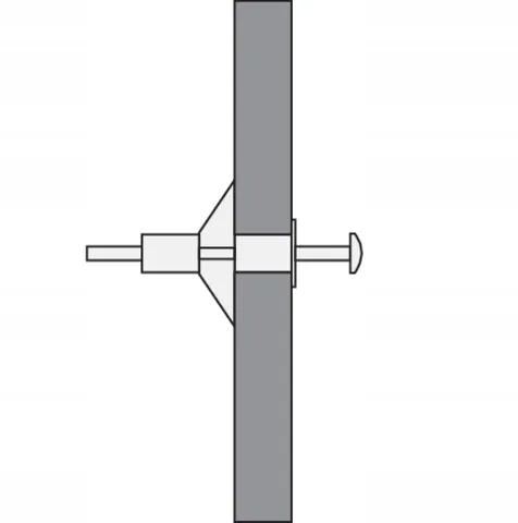 - wyciągany wkręt zaciska kołek rozprężając go na tylnej stronie płyty