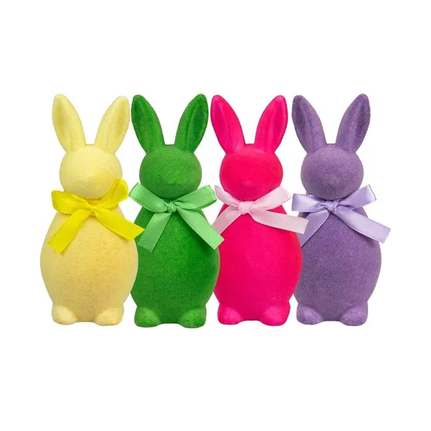 Zając flokowany to dekoracyjny element wielkanocny, który wprowadza do aranżacji radosny, wiosenny klimat. Aksamitna, flokowana powierzchnia nadaje figurce elegancki wygląd i miękką w dotyku strukturę, a intensywne, pastelowe kolory ożywiają świąteczne dekoracje. Klasyczna forma zajączka z ozdobną kokardką sprawia, że dekoracja doskonale wpisuje się w tradycyjne oraz nowoczesne aranżacje wielkanocne. Kompaktowy rozmiar 14 x 6 cm pozwala na łatwe ustawienie figurki na stole, komodzie lub w koszyczku.