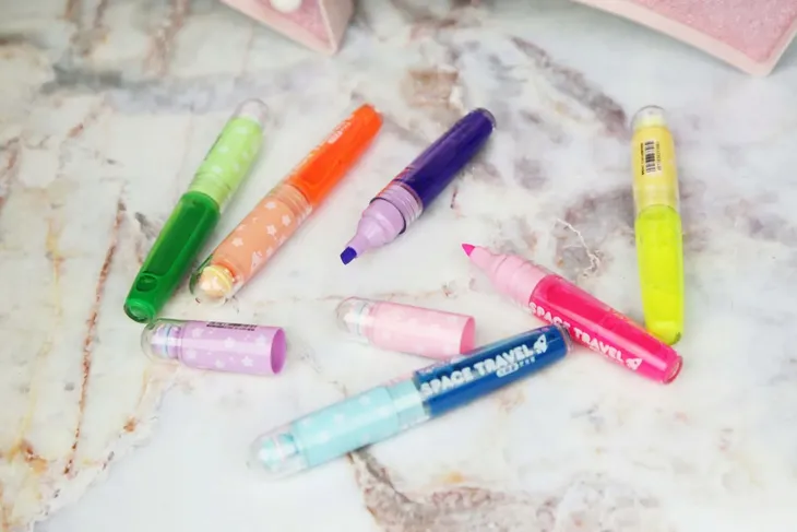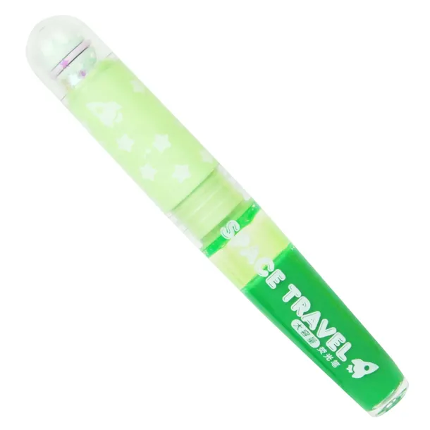 Cudowny zielony mazak/zakreślacz z zatyczką planetą i brokatowymi gwiazdeczkami.