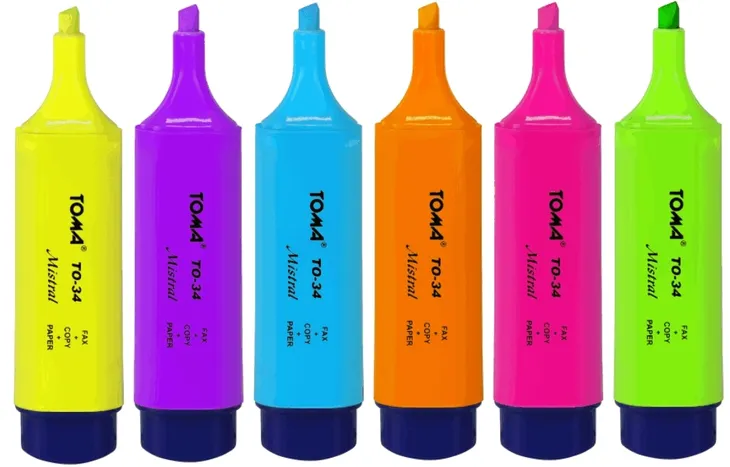 Zakreślacz tekstu, atrakcyjne żywe „nenowe” kolory.