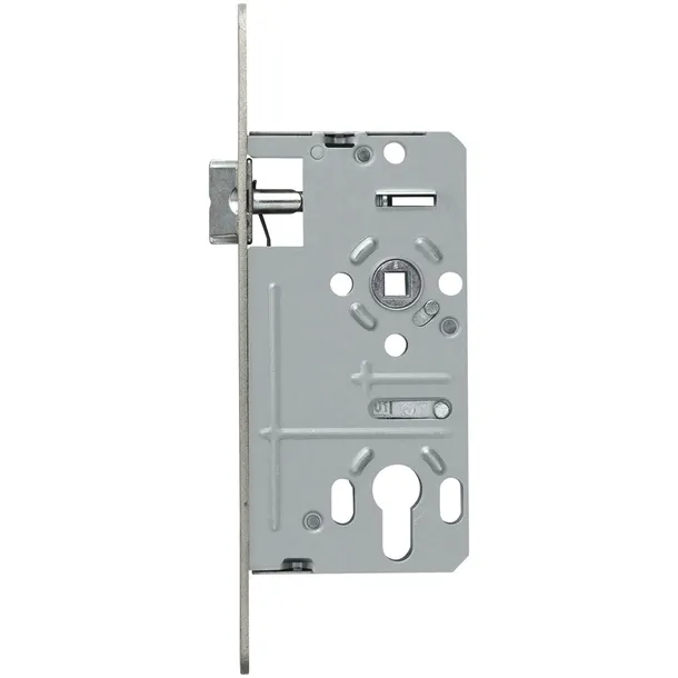 - Mechanizm: rygiel aktywowany wyłącznie przez zamknięcie drzwi