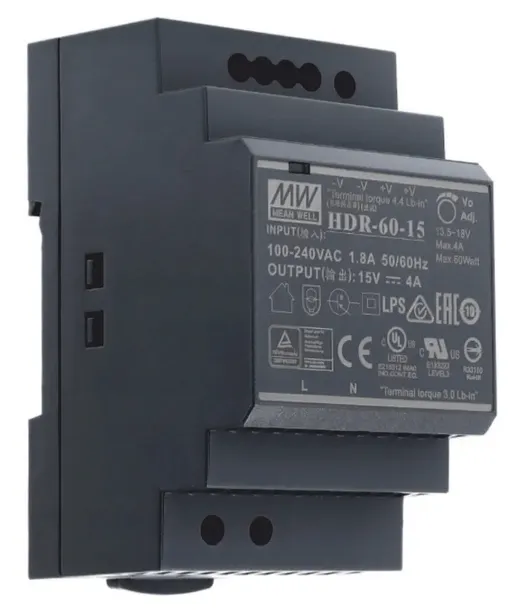 ZASILACZ HDR-60-15 MEAN WELL 15V 4A 60W NA SZYNĘ DIN