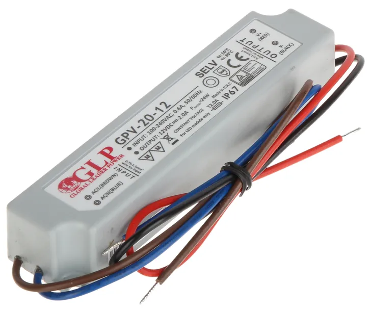 Hermetyczny zasilacz w obudowie z tworzywa sztucznego, przeznaczony w szczególności do zasilania oświetlaczy diodowych LED / IR LED. Uwaga! Jeżeli zasilacz przeznaczony jest do pracy ciągłej (24H) to prąd znamionowy zasilacza nie powinien przekraczać 80% prądu maksymalnego. Należy zwrócić szczególną uwagę na prawidłowe chłodzenie zasilacza podczas pracy!