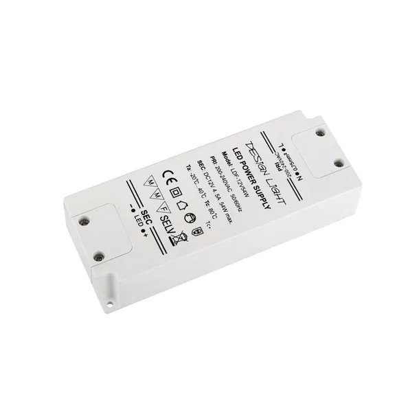 Zasilacz LED standard plus jest przeznaczony do zasilania oświetlenia LED o napięciu 12V DC i łącznej mocy nie przekraczającej 65W. Zestaw nie zawiera przewodu zasilającego. Urządzenie wyposażone jest w wejściowe i wyjściowe zaciski przyłączeniowe. Zasilany jest napięciem przemiennym o wartości 200-240VAC~50Hz. Obniża napięcie wyjściowe do 12V DC. Zamknięty jest w obudowie izolacyjnej z tworzywa sztucznego w kolorze białym.