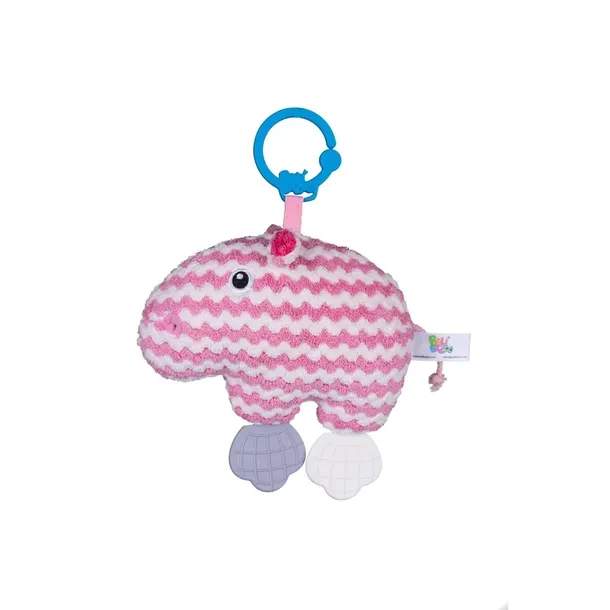 Stylowy Hipcio to niezastąpiony kompan do zabawy! Wykonany został z materiału o fakturowanej powierzchni, który stymuluje zmysł dotyku dziecka, rozwijając jego zdolności poznawcze. Zwierzaka zdobią gryzaczki, a w jego brzuszku kryje się dzwoneczek, dzięki czemu Hipcio wesoło dzwoni przy potrząsaniu. Praktyczny uchwyt, pozwala przymocować zawieszkę w wybranym miejscu, aby wszędzie mogła towarzyszyć maluchowi.Zabawka przeznaczona dla dzieci od dnia narodzin.Cechy produktu:- fakturowany materiał- pastelowe kolory- 2 gryzaczki- dzwoneczek- uchwyt do przymocowania w wybranym miejscu- wiek: 0+