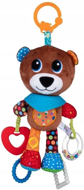 Boguś to miś niezwykły, który kryje w sobie wiele przydatnych funkcji. Wykonany jest z kolorowych materiałów, różniących się fakturą, dzięki czemu stymuluje zmysł wzroku i dotyku malucha. Misiek wyposażony został w kilka gryzaków z wypustkami i kółeczko-grzechotkę, pełną kolorowych kuleczek. W jego brzuszku kryje się jeszcze jedna niespodzianka, dzwoneczek, dzięki któremu Boguś czaruje pięknym dźwiękiem. Praktyczny uchwyt zawieszki pozwoli przyczepić ją w dowolnym miejscu, aby mogła towarzyszyć maluszkowi w każdej przeznaczona jest dla dzieci od dnia produktu:4 gryzaki (2 miękkie przy łapkach, 2 twarde założone na nóżki),bandana z wypustkami (pełniąca funkcję gryzaka),zróżnicowane faktury,grzechotka,szeleszczące uszy,dzwoneczek (ukryty w brzuchu),zawieszka,wiek: 0m+.