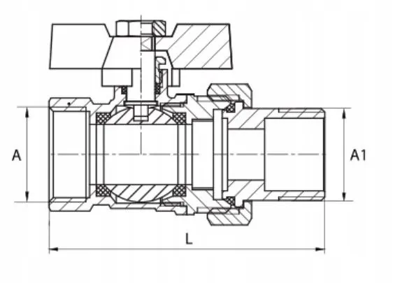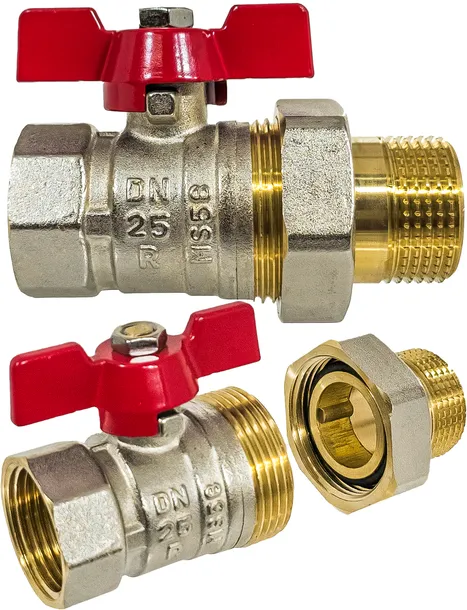 ZAWÓR KULOWY KUREK 1" DN25 MOSIĘŻNY ZE ŚRUBUNKIEM I DŁAWICĄ MOTYLEK SOLIDNY