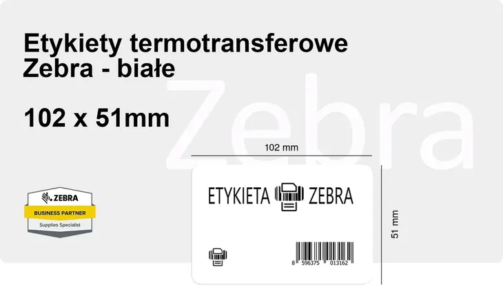 Etykiety termotransferowe papierowe Zebra Z-Select 2000T powlekane z uniwersalnym trwałym klejem z perforacją białe 102x51mm rdzeń 25mm