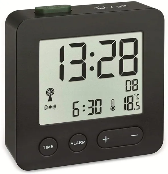 Ten radiobudzik pasuje do każdej sypialni dzięki swojej prostej konstrukcji. Budzik jest dokładny co do sekundy za pomocą sygnału DCF77 i czas zmienia się automatycznie z czasu letniego na zimowy. Zawsze informuje cię o dacie i jednocześnie mierzy aktualną temperaturę w pomieszczeniu.