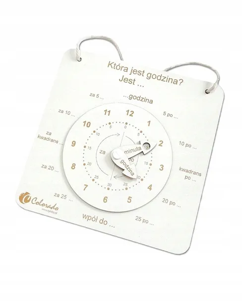 Odkryj magiczny świat czasu z naszym drewnianym zegarem edukacyjnym! Wykonany z trwałej i ekologicznej płyty HDF, ten zegar został zaprojektowany z myślą o małych uczniach, aby nauka była zarówno zabawna, jak i interaktywna. Ruchome wskazówki pozwalają dzieciom na praktyczne poznanie godzin i minut, ucząc je, jak odczytywać czas w przyjemny sposób. Dodatkowo, dzięki wygodnemu sznureczkowi, zegar może zdobić ścianę pokoju dziecka, będąc zawsze pod ręką, gdy przyjdzie czas na kolejną lekcję. Idealny dla małych odkrywców i młodych umysłów pragnących zrozumieć, jak płynie czas!