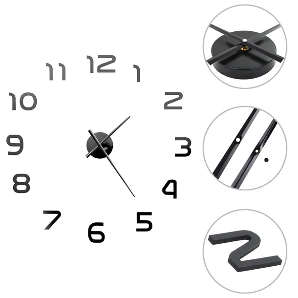 Zegar ścienny 3D DIY, czarny, 100 cm, EVA