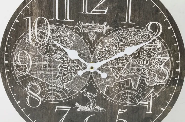 Zegar ścienny MDF retro MAPA ŚWIATA 34cm 124263