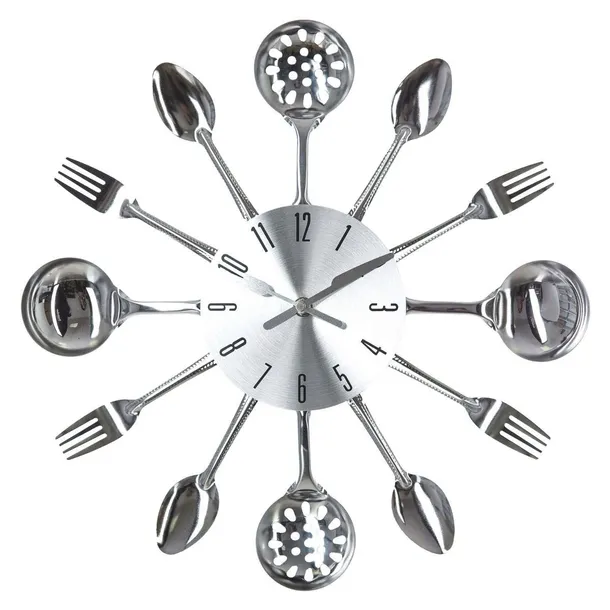 ZEGAR ŚCIENNY DO KUCHNI 3D sztućce 38 cm srebrny