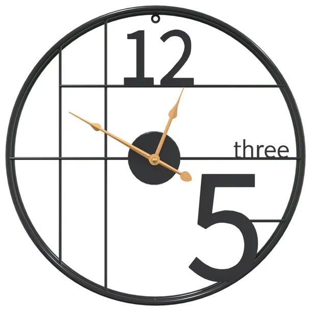 Zegar ścienny, czarny, Ø50 cm, żelazo