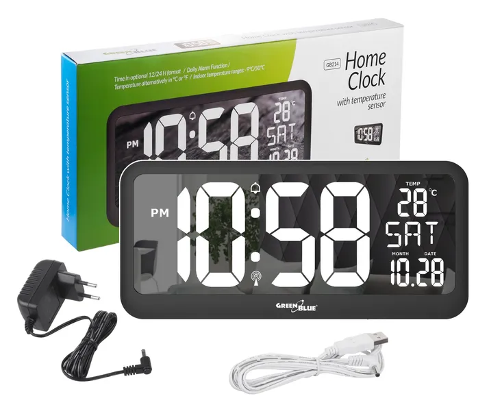 Zestaw zawiera- Zegar ścienny LCD bardzo duży GreenBlue GB214