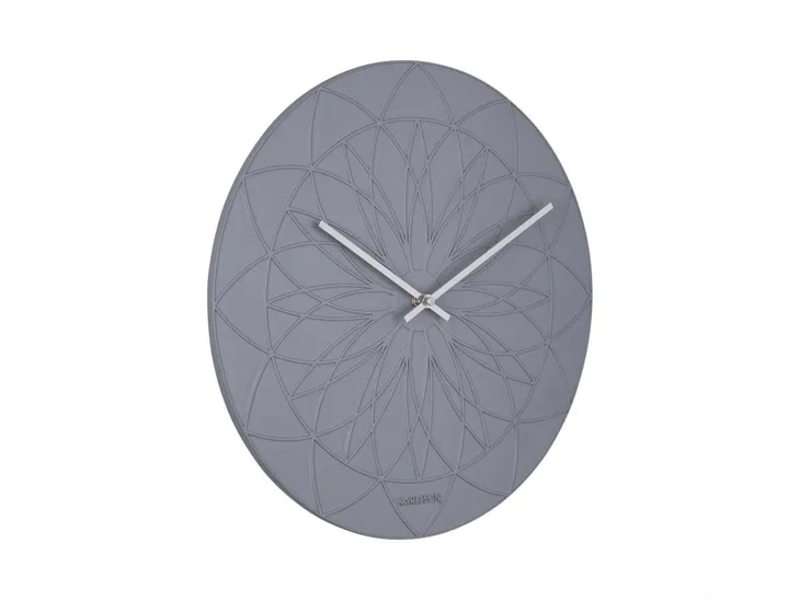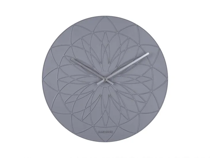 Zegar ścienny Fairytale jest ozdobiony subtelnym, geometrycznym wzorem. To zegar o charakterze dekoracyjnym – nie ma podziałki ani cyfr.